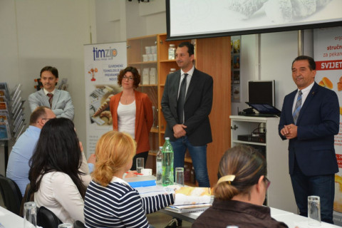U novije vrijeme prehrambeni stručnjaci sve više zagovaraju primjenu enzima u pekarstvu i slastičarstvu, ističući enzime kao biološke proizvode koji utječu na poboljšanje mnogih svojstava i sveukupnu kvalitetu pekarskih i slastičarskih proizvoda. Vođeno tom spoznajom, rukovodstvo TIM ZIP-a odlučilo je tijekom Dana otvorenih vrata u Zagrebu premijerno predstaviti primjenu enzima u pekarstvu, a potom, radi iskazanog velikog interesa za tu temu od strane posjetitelja, organizirati u suradnji s Richemont klubom stručni seminar o enzimima u pekarstvu i slastičarstvu. Početkom svibnja ove godine seminaru je prisustvovalo tridesetak polaznika iz Hrvatske i susjednih država Bosne i Hercegovine, Srbije, Crne Gore i Makedonije. Sudionicima su kroz teorijsko izlaganje i živu proizvodnje prenijete najkvalitetnije informacije o enzimima. Svojstva, djelovanje i primjenu enzima u pekarstvu stručno su obrazložile predavačice Prehrambeno-biotehnološkog fakulteta u Zagrebu, doc.dr.sc. Dubravka Novotni i dr. sc. Nikolina Čukelj, a tehnologiju enzima i mogućnosti kombiniranja istih stručno su prezentirali predstavnici tvrtke IL GRANAIO DELLE IDEE, vlasnik Federico Alamprese Manes Rossi i direktorica izvoza Anna Simioni. Praktični je dio po suvremenim standardima, recepturama i tehnološkim postupcima izvodio pekarski stručnjak talijanske tvrtke, Tomasso Zago. Grupa je tehnologa s velikom pažnjom pratila iznošenje suvremenih teorijskih saznanja o prednostima enzima te sudjelovala u živoj proizvodnji i degustaciji raznih vrsta proizvoda. Praktični je dio obuhvaćao spravljanje kruha, grisina, peciva, ćabata pizza i kroasana u čijoj su se pripremi koristile sljedeće vrste enzima: LIEVITO MADRE, CRISPYENZYMES, BURGERENZYMES, ENZYMATICO, PIZZAENZYMES i SWEETENZYMES.